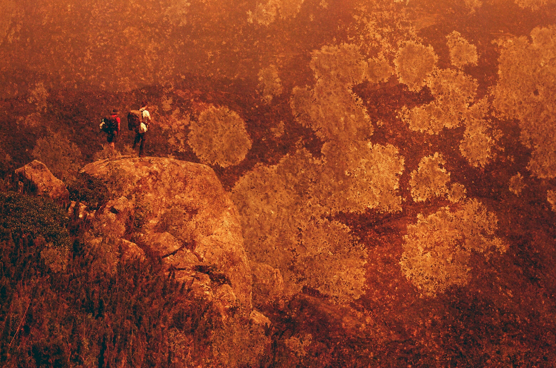 Quando a angústia por viver em meio à cidade brota do âmago da alma, a tormenta é inevitável. Em perfeito estado de lucidez, o mais sensato é sempre atender ao chamado da montanha. O Pico Paraná, reconhecido através de filmes redscale, torna-se então um espaço onde a imaginação pode fluir sem represálias.
